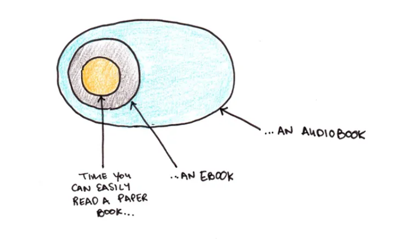 By having a book available in every format, I will no longer have an excuse not to read because "the book is in the other room" or "my hands are busy".