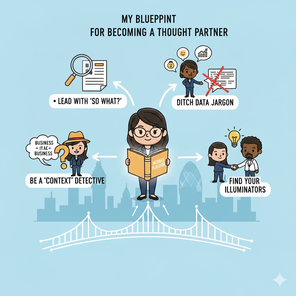 - Find Your "Illuminators": I actively seek out stakeholders who value my input, not just my output. These are the partners who view data as a conversation, not a service, and they are the ones who will help you grow into a strategist.