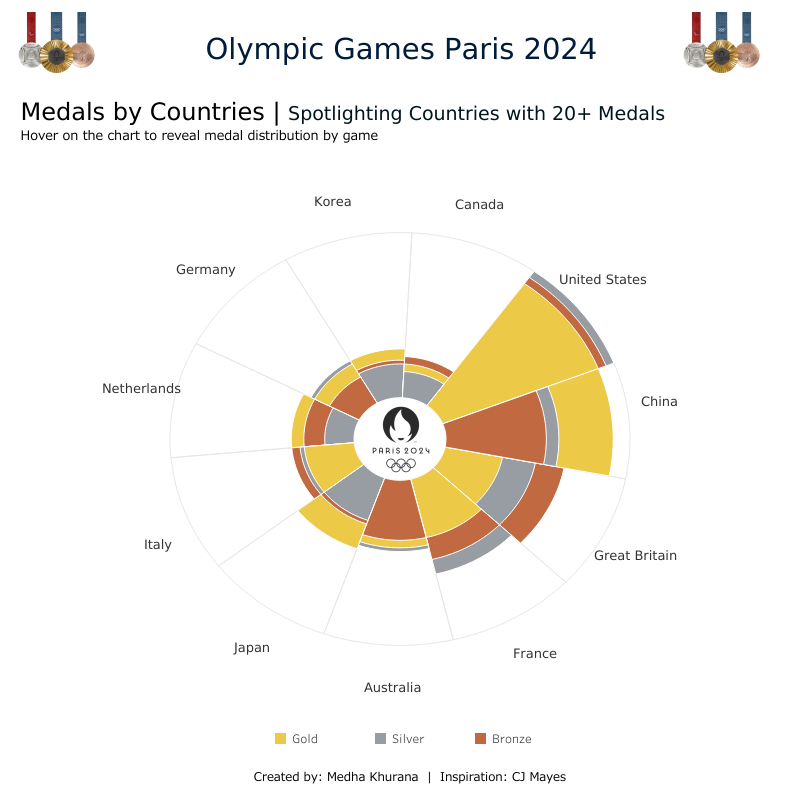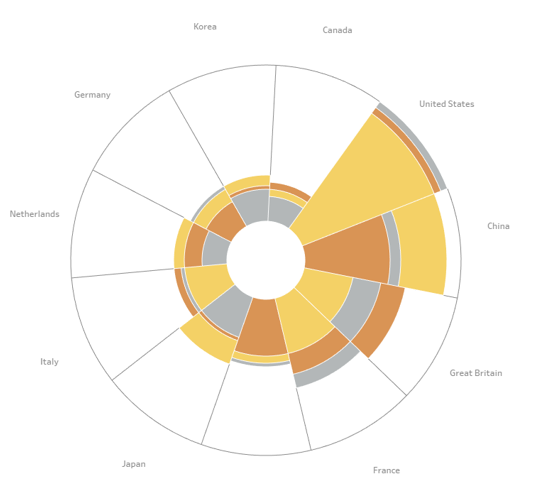 The result? We’ve created a completely new version of the Coxcomb Chart, where each category overlaps in a way that resembles an Olympic Torch! 😉