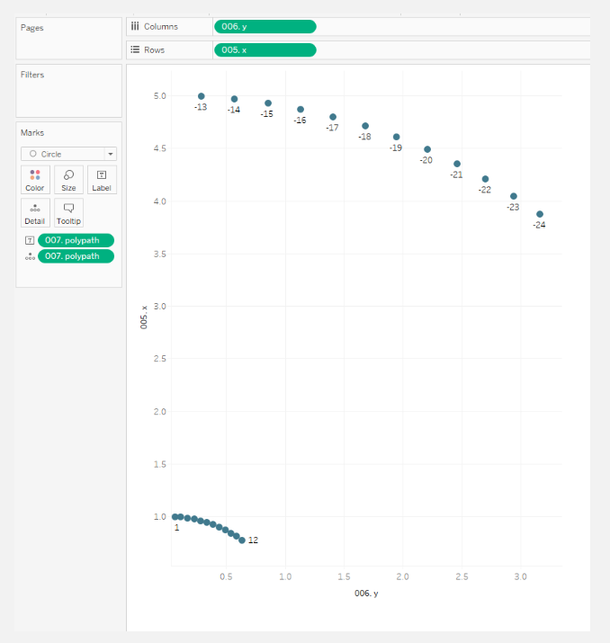 For instance, if we remove points from 14 to 23 and refresh the data source, the results are interesting. Instead of the smooth curves we typically see, you’ll notice that the outer points are now directly connected, forming straight lines rather than an arch.