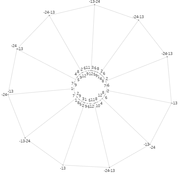 Now, you might wonder—why just 1 to 24? Was 24 CJ’s lucky number? (Haha, who knows!) But, in fact, this forms the basis of the curves you see in each segment of the Coxcomb. The values from 1 to 12 represent the outer curve, while 13 to 24 create the inner curve. This is made possible through the 007. Polypath Calculation which looks like this: