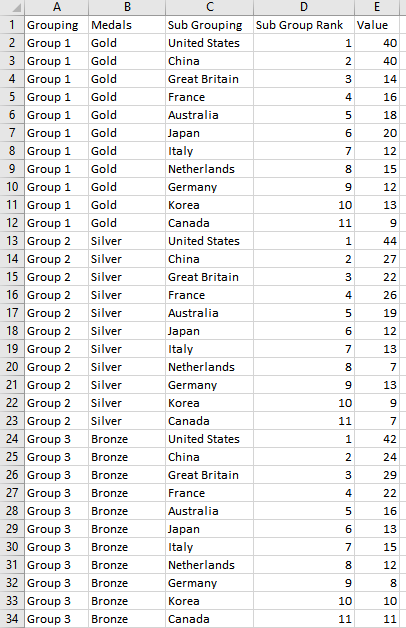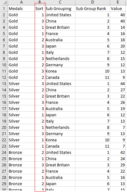 Now the first category is always gold, followed by silver, followed by bronze.
