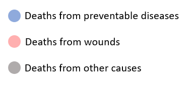 Let's try and read this chart. Nightingale had data showing how soldiers were dying from three main causes: preventable diseases, war wounds, and other causes (like accidents or natural causes).