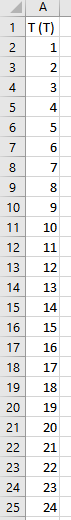 Next comes the other data source—the crucial one that we do not need to modify. This data contains a column labelled T, with values ranging from 1 to 24.