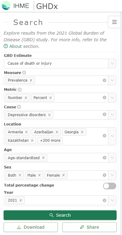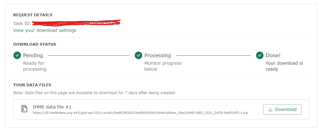 I sourced the data directly from the GBD wesbite. To access it, simply sign up and specify your intended use for the data. You’ll then choose the metrics you need, and an email will notify you when your data is ready for download. Please note, that it might take a few days for the data to become available. Once it is, you'll have a 7-day window to download it.