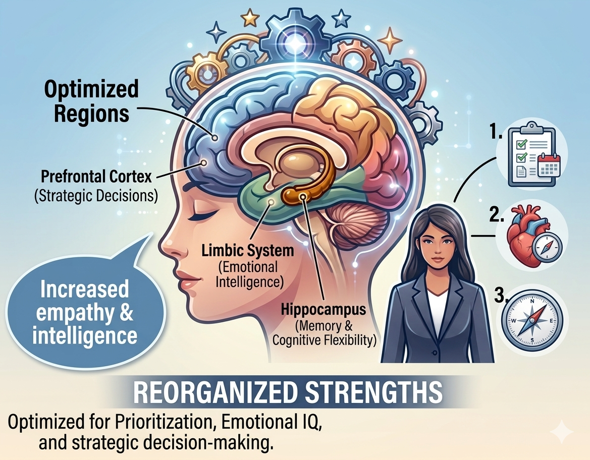So when a woman returns to work after maternity leave and says she feels different, she is right. Her brain has been through something with no equivalent in male biology. The maternal brain isn't diminished. It's been reorganised, with new strengths in empathy, emotional intelligence, prioritisation, and reading people that, in a different world, a workplace might actively want to harness.