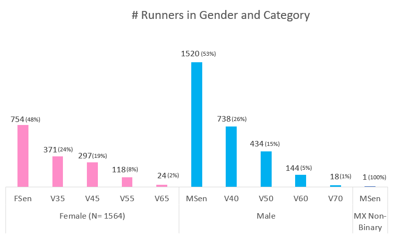 Out of 754 females, 7 didn’t finish, leaving 747 runners in total.